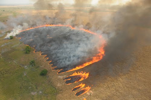 Imagen 1. Ejemplo de visión ecosistémica: Cambios de densidad de herbívoros pueden alterar la frecuencia de incendios de un pastizal